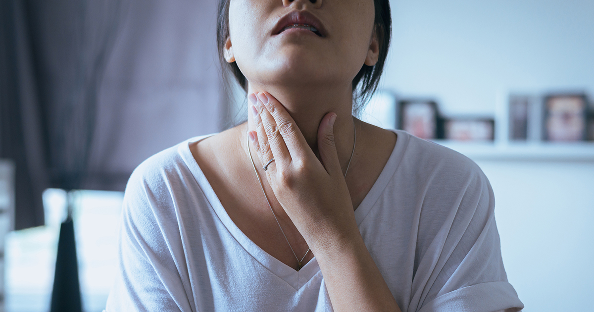 Anxiety or anxiety disorders can bring about strange sensations, such as the throat closing up. Many individuals with panic disorder experience this sensation during panic attacks. It may feel like their throat is constricting or thereâs a lump in their throat. Other descriptions of the sensation when the throat closes up include tightness of throat muscles, throat pressure, or a blockage of the airway. It may feel like they have to swallow every so often to clear their throat. Patients should rule out medical issues by visiting a doctor because there are many medical causes for this sensation. Being anxious can cause a tight throat feeling because this state of mind activates the body's stress response. Itâs a normal reaction to feeling anxious because the body perceives this as a threat. The muscles will tighten during these situations to prepare it for fighting or fleeing. This occurs to a certain degree in many anxious or stressful situations.