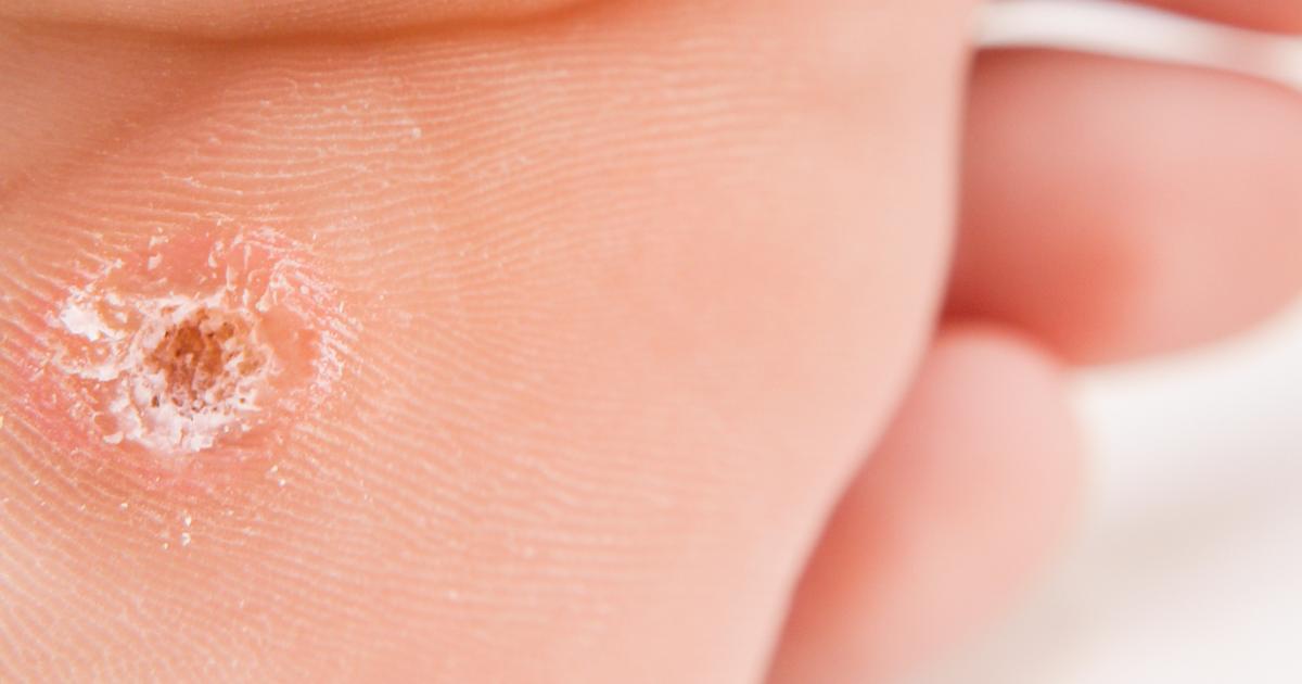 Plantar warts occur when small growths appear on the weight-bearing areas of the foot. The most common place for them is on the heel. The pressure from an individual's weight can sometimes lead to the warts growing inward underneath a thickened and hard layer of skin, otherwise known as a callus. This condition is caused by the human papillomavirus, which enters the body through small cuts, abrasions, or other weak openings in the bottom of the foot. The majority of plantar warts aren't indicative of a serious health concern. They tend to resolve without treatment after a while. If they're causing discomfort or cosmetic anxiety, though, patients might do self-care treatments at home or talk to a doctor about having them removed.